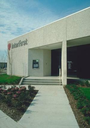 Built as a remote branch of a bank serving the Nasa area, this full service facility took design cues in the form of angled wing walls from the main bank. A high ceiling lobby area is the primary organizing element and is flanked by all operational areas including tellers, new accounts and loan officers. The space is terminated with the vault doors on one end near the entry and a grid of window wall of on the other. Drive-in tellers are adjacent to lobby tellers to facilitate better management of personnel when under staffed. |