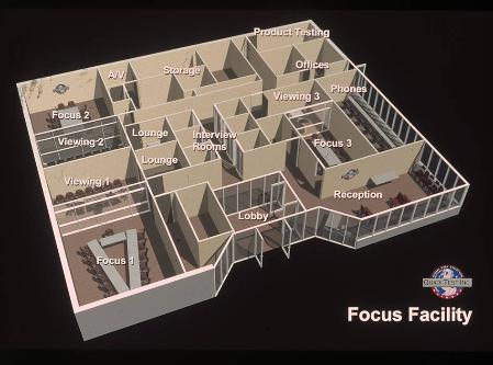 NQN, operated focus group facilities in many cities and this one in Atlanta would become the prototype for future facilities. Working closely with the director of focus group operations, Bill May developed the program and in intensive interactive design sessions over several days, developed this efficient plan to best meet the needs of the company and their client focus group facilitators. The program provides for three focus group rooms for various size groups, 6 interview rooms, offices, client lounges, phone banks and waiting. |