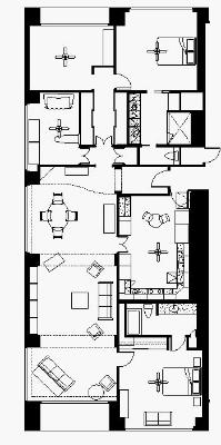 This traditional high-rise residence was designed around the fine 18th century antiques and reproductions collected by the owners. The owner, an accomplished woodworker, built most of the reproductions. The design was intended, not to mimic 18th century details, but to serve the programmatic needs of the owners while providing an appropriate background for the furniture, rugs and quilts. |