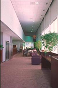 Horizontal insulated panels on a steel frame which was left exposed on the interior provided a “high tech” enclosure on a tight budget. The high volume space entered through a grand entry accommodated ATM, lobby and drive-in tellers, credit department, new accounts, cashier, president, secretaries and customer waiting on the first floor. The second floor mezzanine housed bookkeeping, lounge and 6 loan officers. |