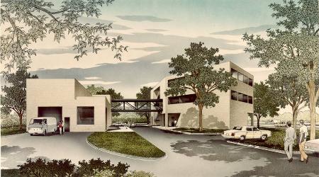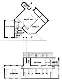 | I designed this project years ago while employed by a large engineering firm. The site for this project, near downtown Houston, was blessed with a stand of mature live oak trees. The program included both a new central pump station and a central control center for water department. A preliminary engineering report had called for a single building. Bill May saw conceptual opportunities to separate the functions using a bridge between buildings with a bridge between them as a metaphor for the electronic link. Visitors observe the operations of the control center from a second floor overlook and can then cross a bridge to observe the pump station operation from another second floor observation deck. Separating the buildings also enabled the design of the buildings to save the oaks. This design has stood the test of time and still looks good. |