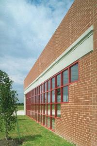 Copperfield Center was a large project in Northwest Houston featuring retail on the portion of the site adjoining the highway and office/service space at the rear where visibility is not as important. A red grid punctuates the storefront. The façade, designed to accommodate large graphics on the brick sign band, includes a pre-cast lintle with a cast reveal and continuous neon strip serving as a unifying element. |